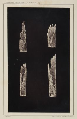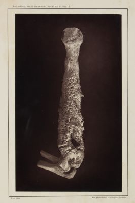 This volume contains large woodburytype photographs of war inflicted injuries. John Carbutt did the Woodburytypes; James R. Osgood, Boston did the heliotypes and J. Bien, New York did the lithography. A. J. Ward and William Bell were the photographers. Three volumes of this set were illustrated with Woodburytypes for the first issue. This was the first volume issued, the others following. Reference is made in the first medical volume that the idea of using Woodburytypes came from Alexander Agassiz and his use of them. This group of volumes represents the largest use of Woodburytypes in the United States, and probably is what kept Carbutt solvent.